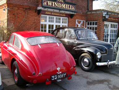 Below: Jowett Car Cluc Southern Section nosh-up mid March 2004. Javelin of Brian Gordon and the Edmund Nankivell FHC Jupiter